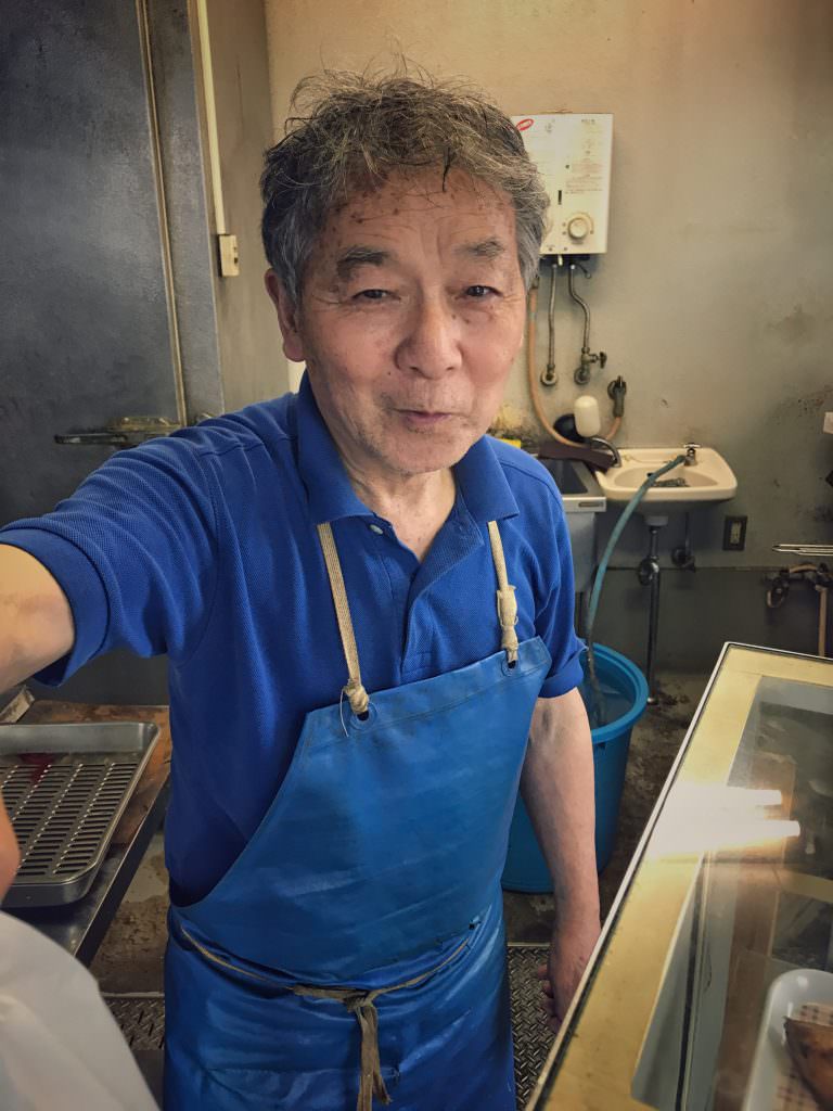 店主は昭和11年生まれの80歳。毎日、築地まで買い出しに行くので朝は5時起き。