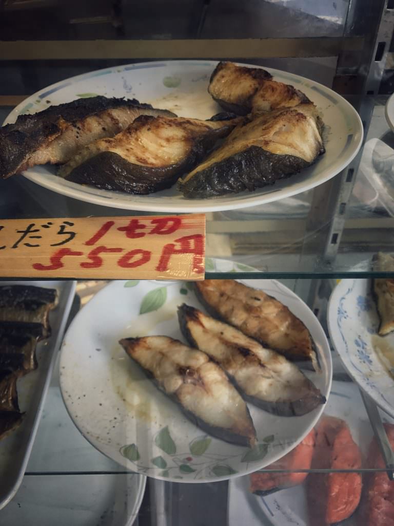 ショーケースには大ぶりに切った魚が丹念に焼かれてお惣菜として売られていた。