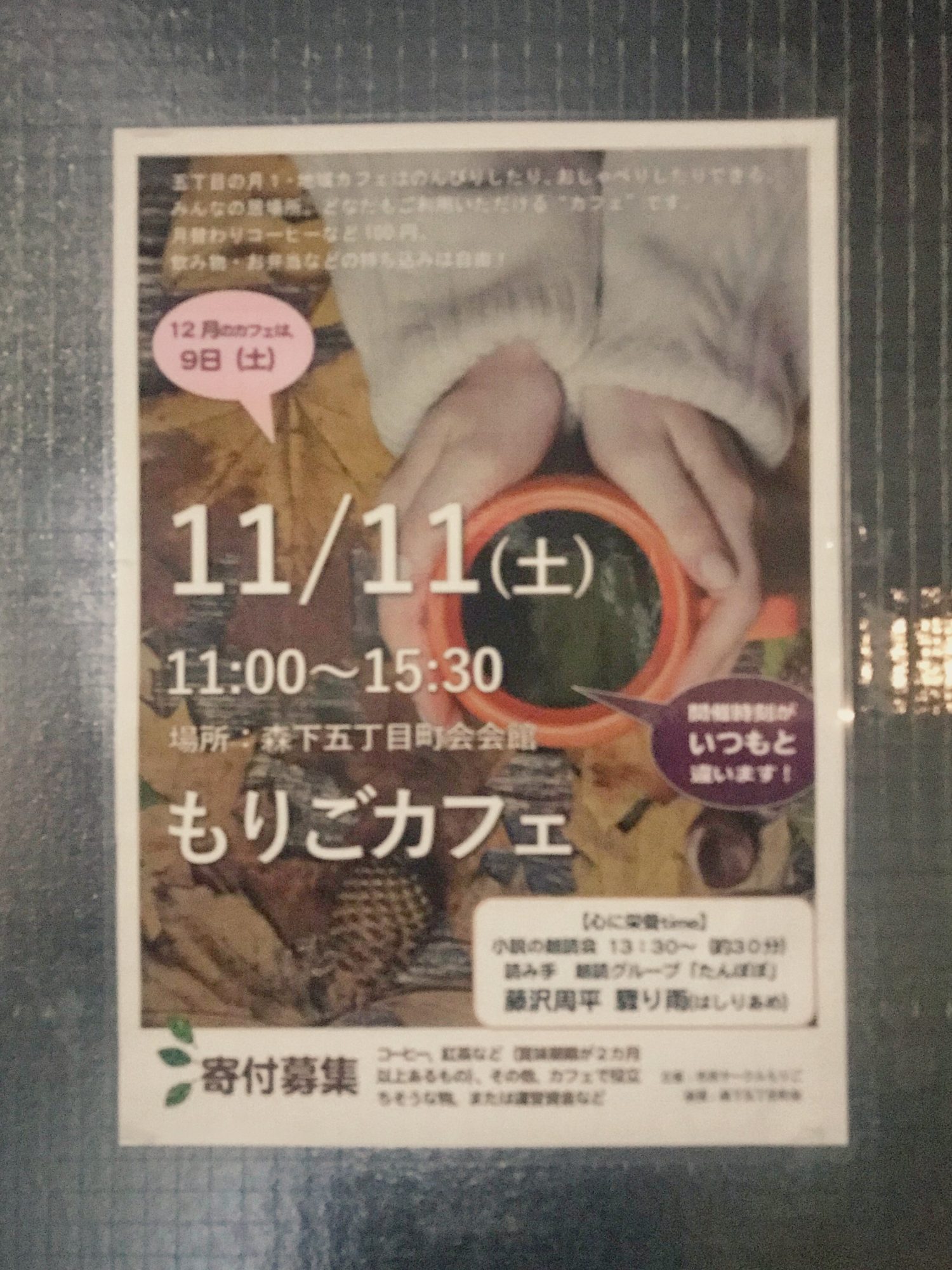森下五丁目会館で開催されます。コーヒーは100円でお弁当などの持ち込みOKだそうです。